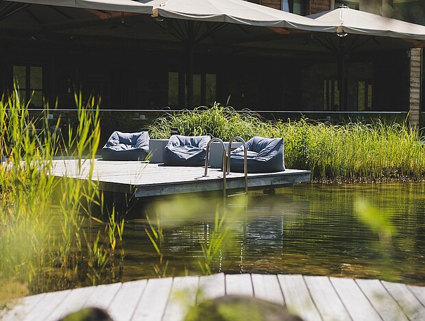 - Spa-Bereich mit drei verschiedenen Saunen, Wohlfühl-Ruheräumen, Ausgang ins Freie und Kneippbereich im Badeteich für mehr Platz zum Entspannen